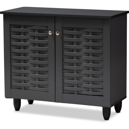 Baxton Studio Winda 2 Door Shoe Storage Cabinet in Dark Gray Finish