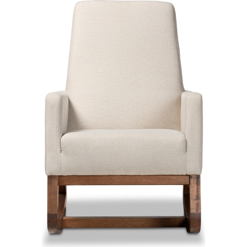 Baxton Studio Yashiya Rocking Chair in Beige Fabric & Walnut Finish