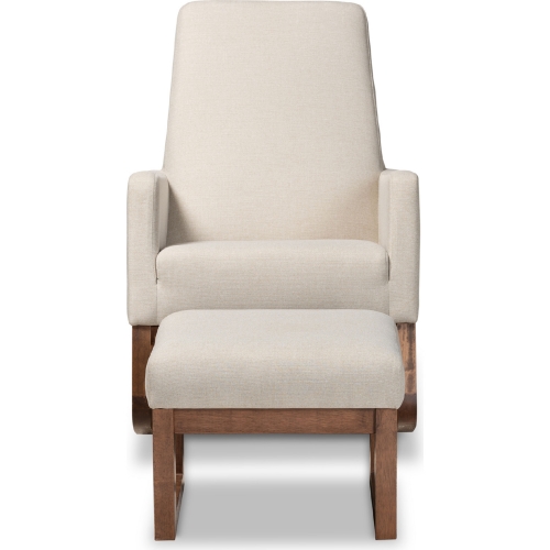 Baxton Studio Yashiya Rocking Chair & Ottoman Set in Beige Fabric & Walnut Finish