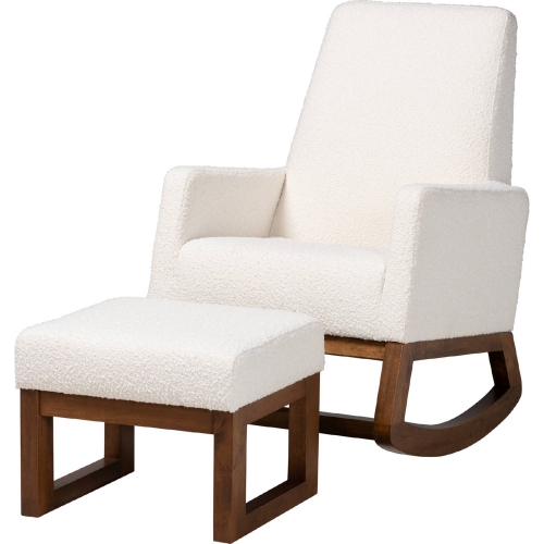 Baxton Studio Yashiya Rocking Chair & Ottoman Set in Off White Boucle & Walnut Finish Wood