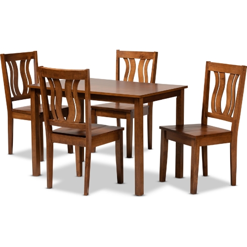Baxton Studio Zamira 5 Piece Dining Set in Walnut Brown Wood