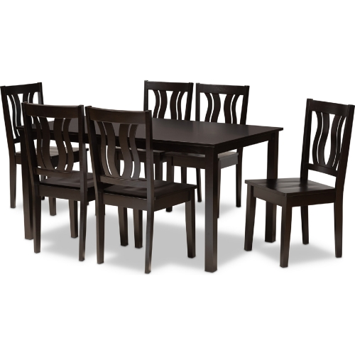 Baxton Studio Zamira 7 Piece Dining Set in Dark Brown Wood