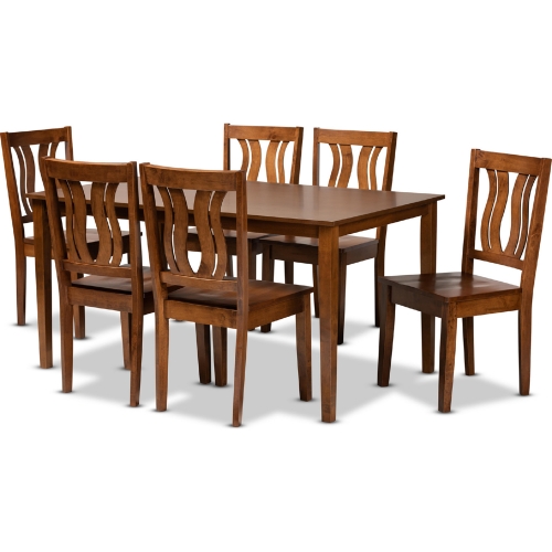 Baxton Studio Zamira 7 Piece Dining Set in Walnut Brown Wood