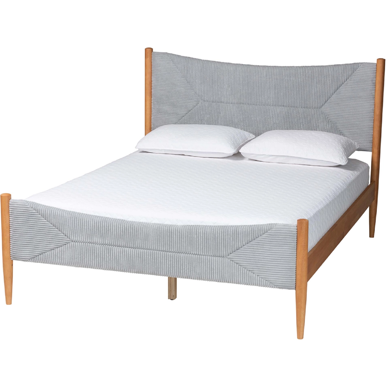 Baxton Studio Zena-Grey/NT-Oak-Queen-4PC Bedroom Set Taylin 4 Piece Queen Bedroom Set Grey Corduroy Fabric Oak Finish Wood