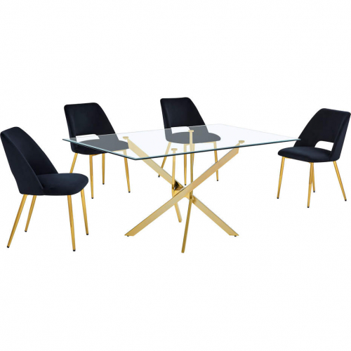 Best Quality 5 Piece Dining Set in Tempered Glass, Gold Chrome & Black Velvet