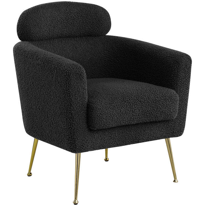 Best Quality AC1 Accent Chair in Black Faux Fur Fabric & Gold Chrome Legs
