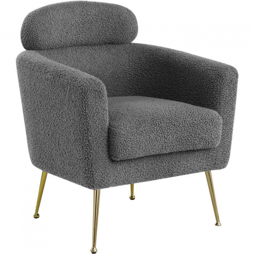 Best Quality AC1 Accent Chair in Dark Gray Faux Fur Fabric & Gold Chrome Legs