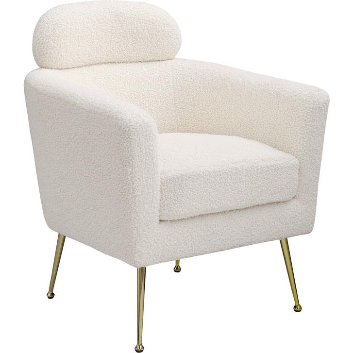 Best Quality AC1 Accent Chair in White Faux Fur Fabric & Gold Chrome Legs