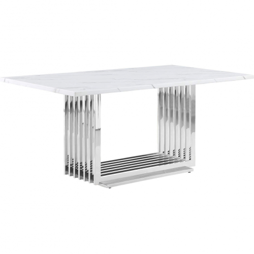 Best Quality D310 68" Dining Table in White Marble & Polished Stainless Steel Base