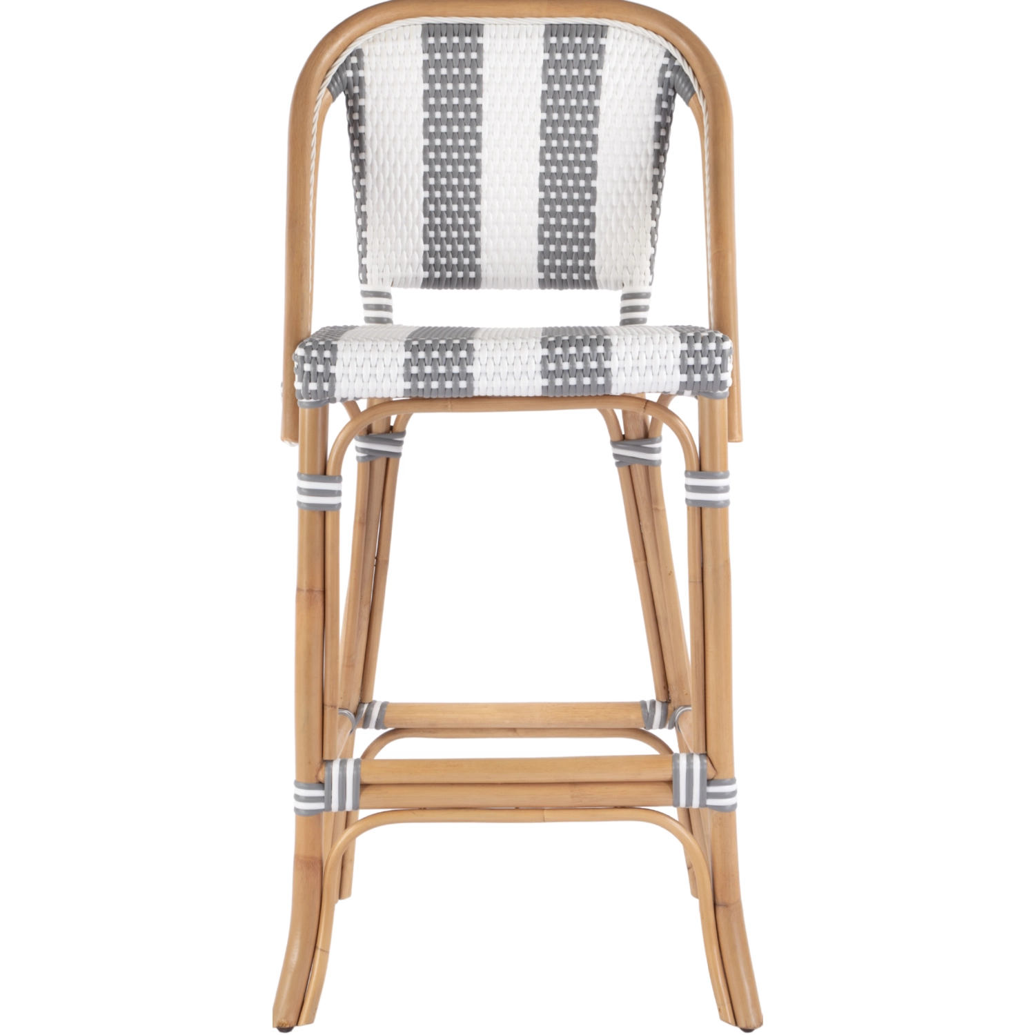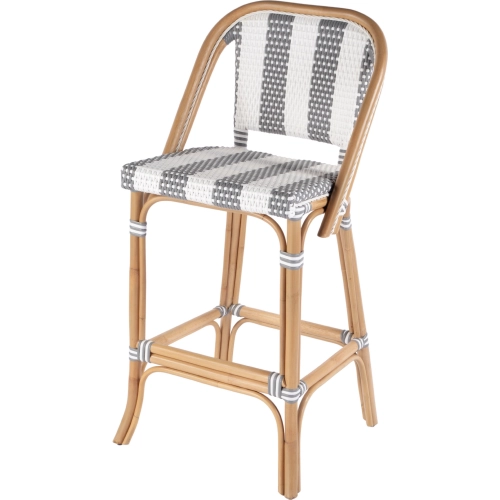 Butler Specialty Lila Bar Stool in Gray & White Poly Rattan & Distressed Natural Rattan