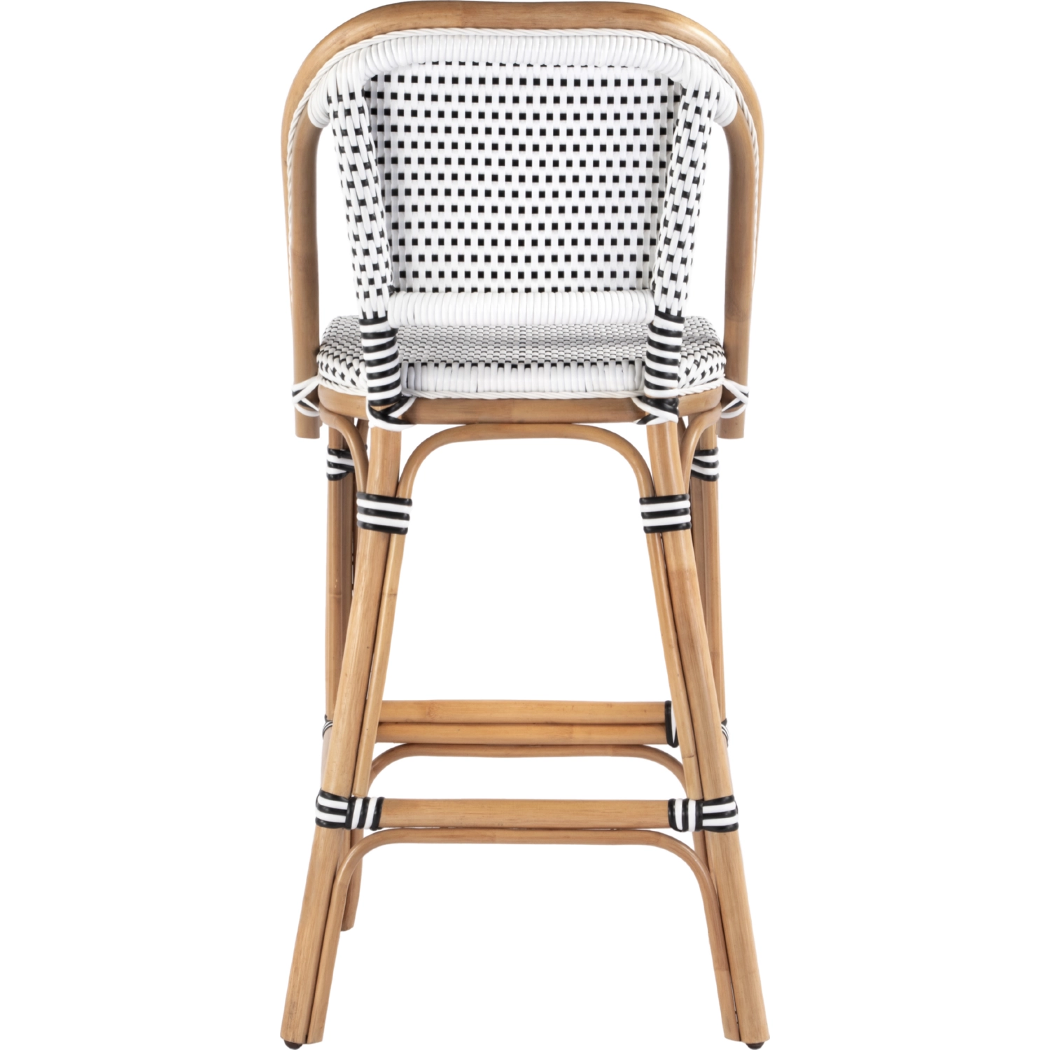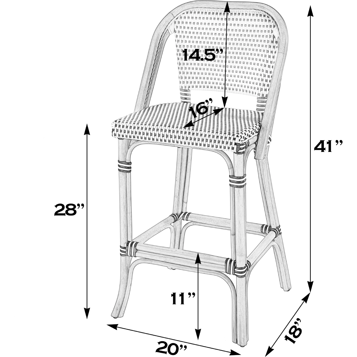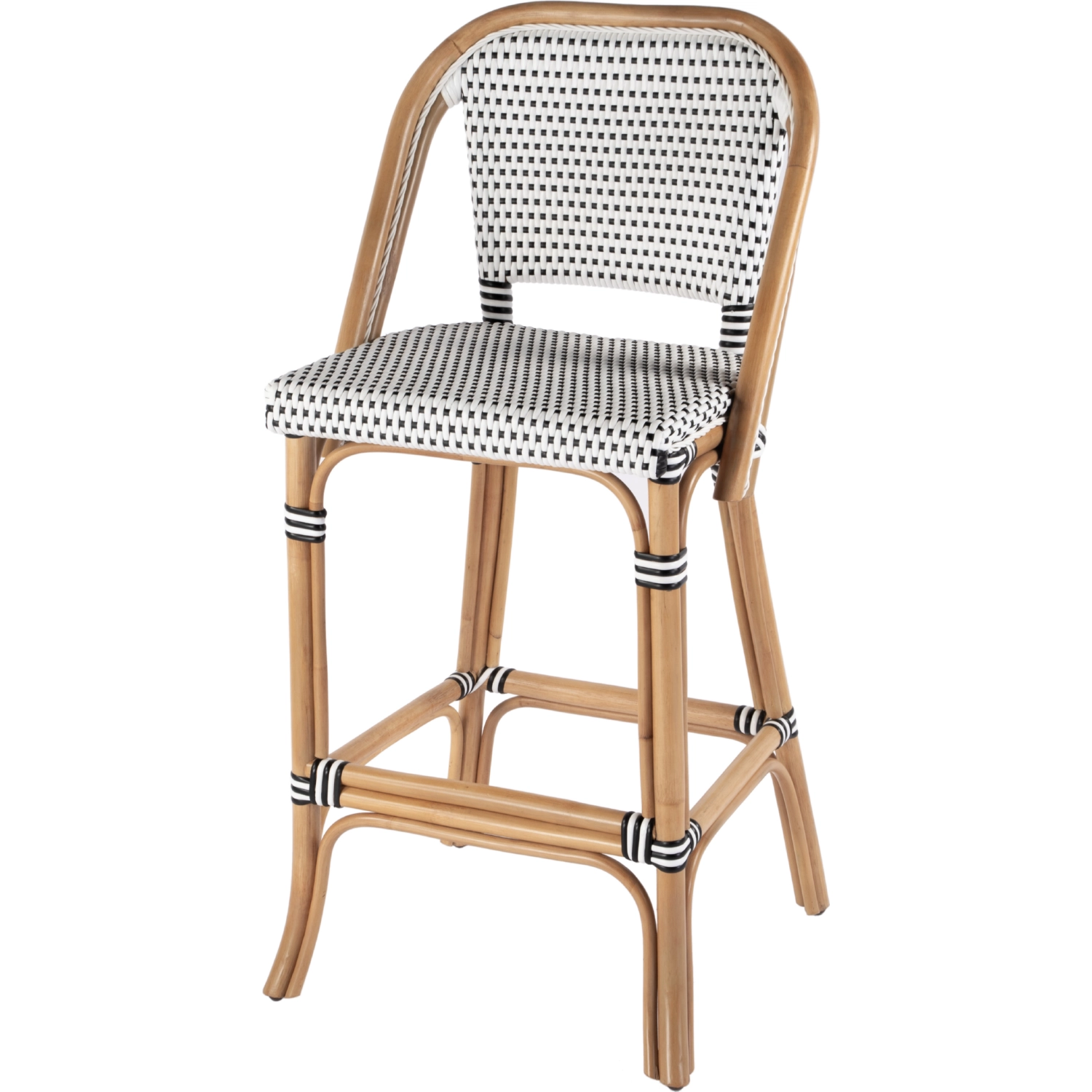 Butler Specialty Lila Bar Stool in Black & White Poly Rattan & Distressed Natural Rattan