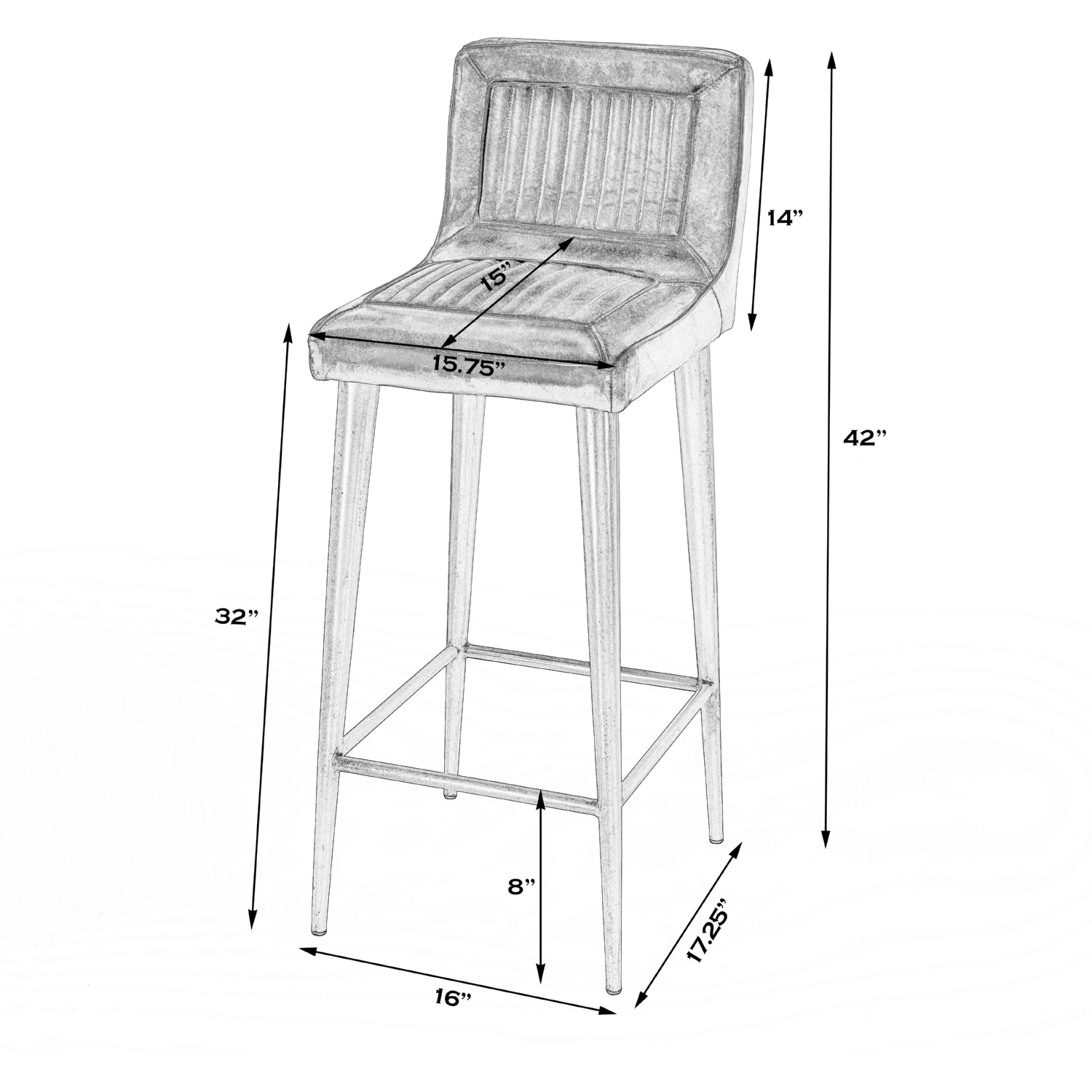 Dimensions: 15.75"W x 15.75"D x 42"H, Seat: 15.75"W x 15"D x 32"H, Seat back: 15.5"W x 11"H, Thick 3.25" foam seat, Seat bottom: 15.5"W x 15"D, Seat Thickness: 3.25", Footrest to floor: 8"