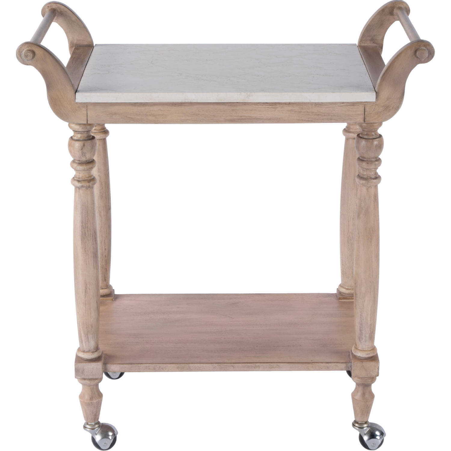 Butler Specialty Danielle Bar Cart in Weathered Tan Wood & Beige Marble
