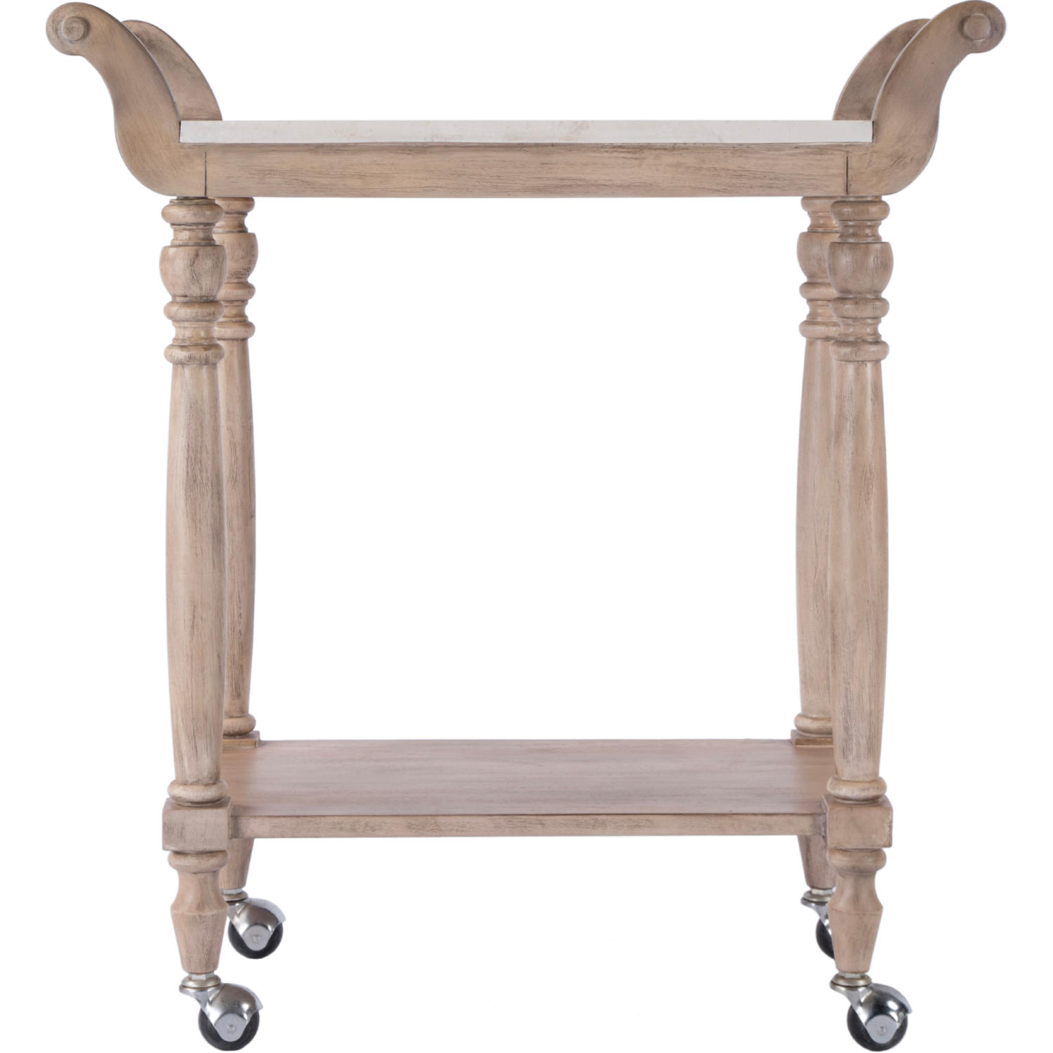 Butler Specialty 5518415 Danielle Bar Cart Weathered Tan Wood Beige Marble