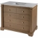 Dimensions: 42"W x 22"D x 35"H, Top: Faux 2nd Drawer: 14"W where cutout is, 34" full width, cutout width 6"W x 15"D x 4"H, 3rd drawer (Double Drawer): 34"W x 15"D x 8.5"H, Metal Drawer Glides; Faucet holes are 4" from center of hold to center of hole, Plumbing cutouts on the back side measurements: Hole: 12"L x 12"W X 4"D until drawers, Hole sits 11-1/8" from base, 14.25" in from sides and 7.75" down from the top, Top Thickness: .75"