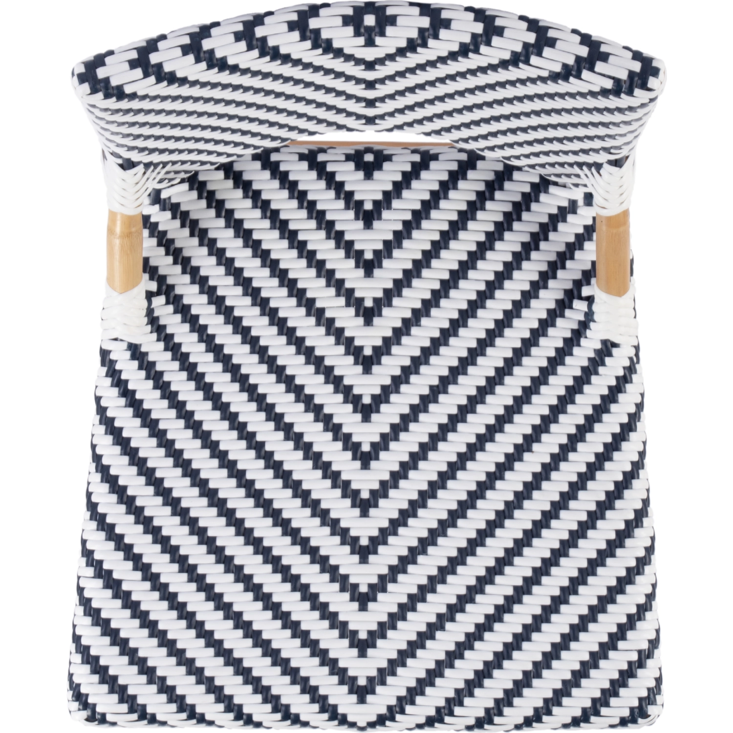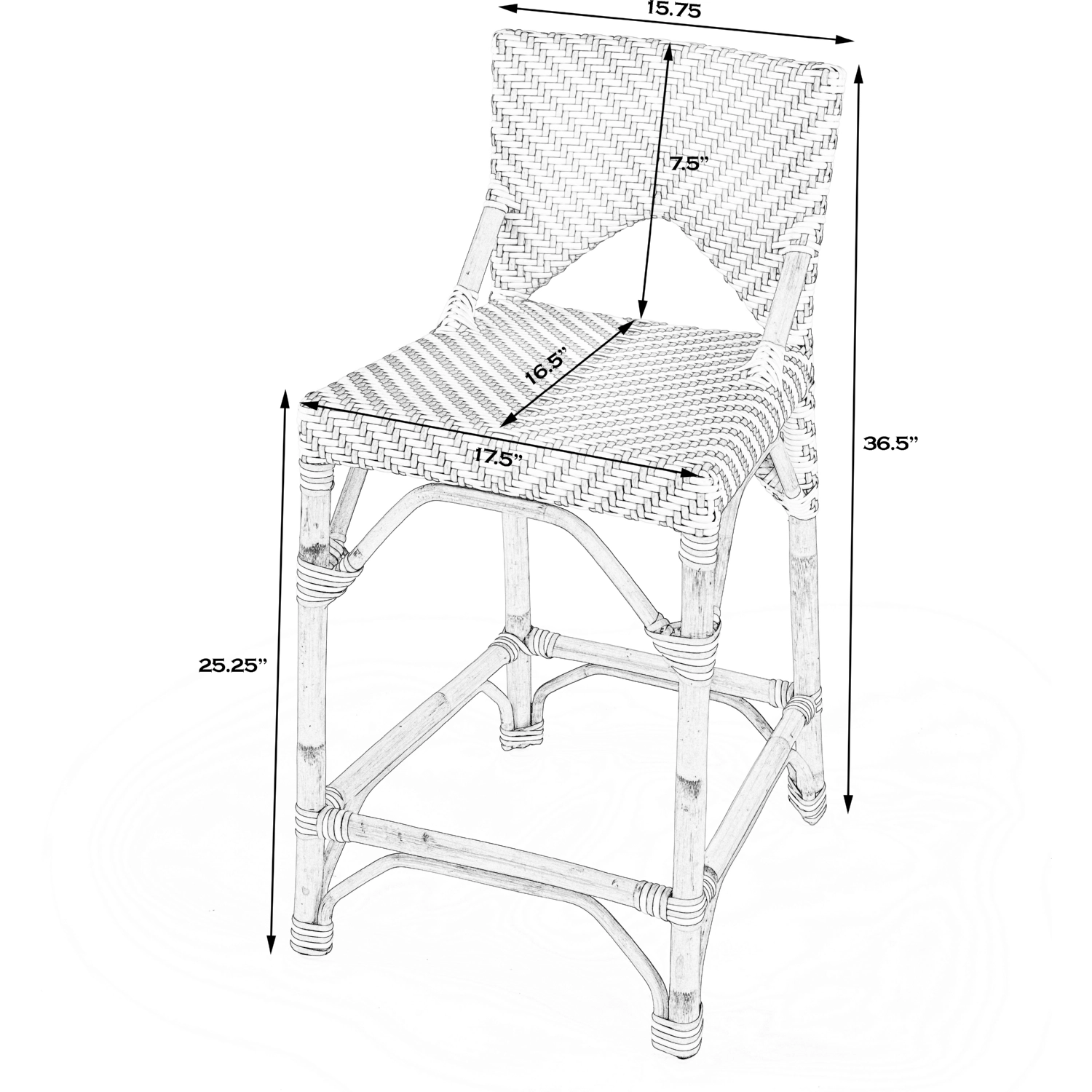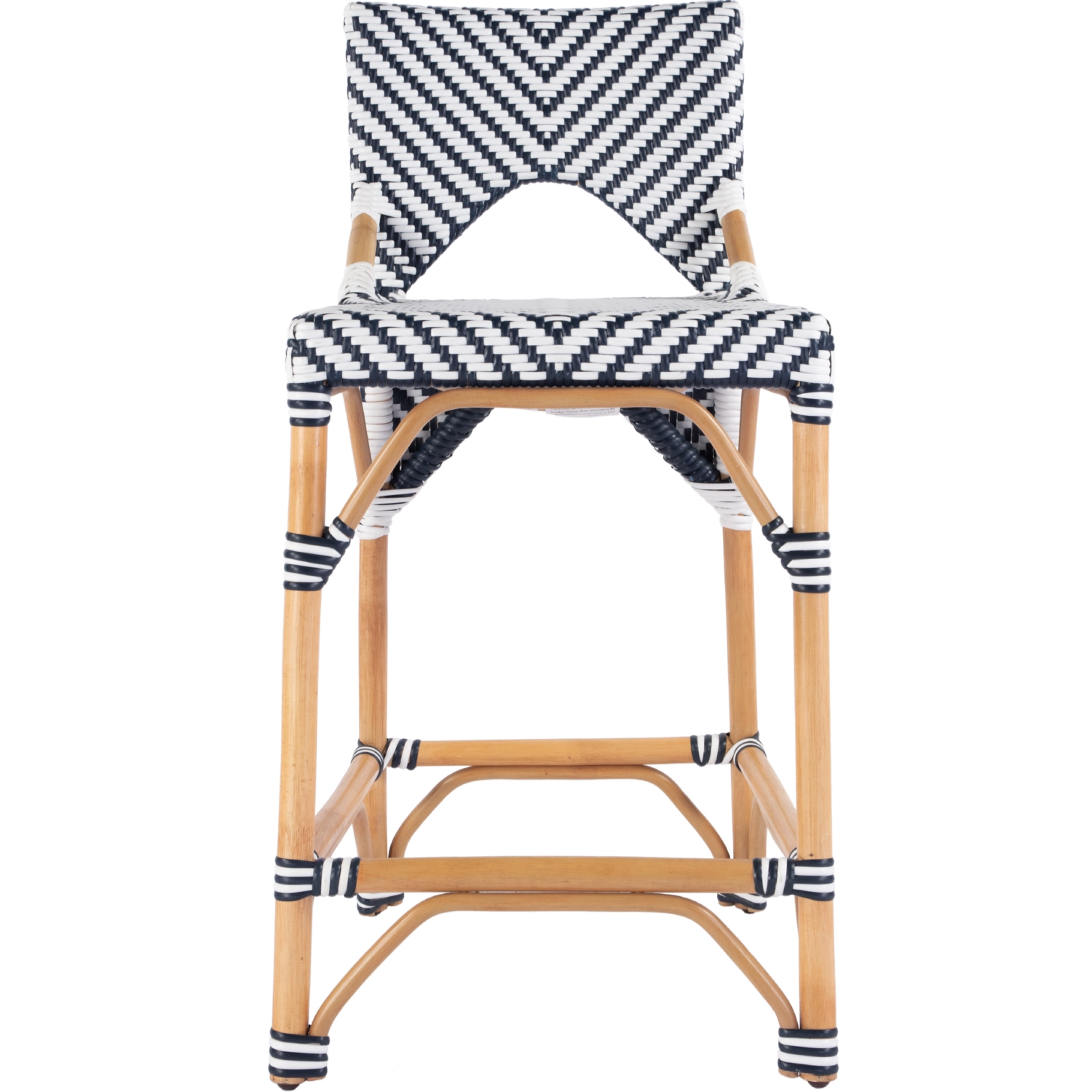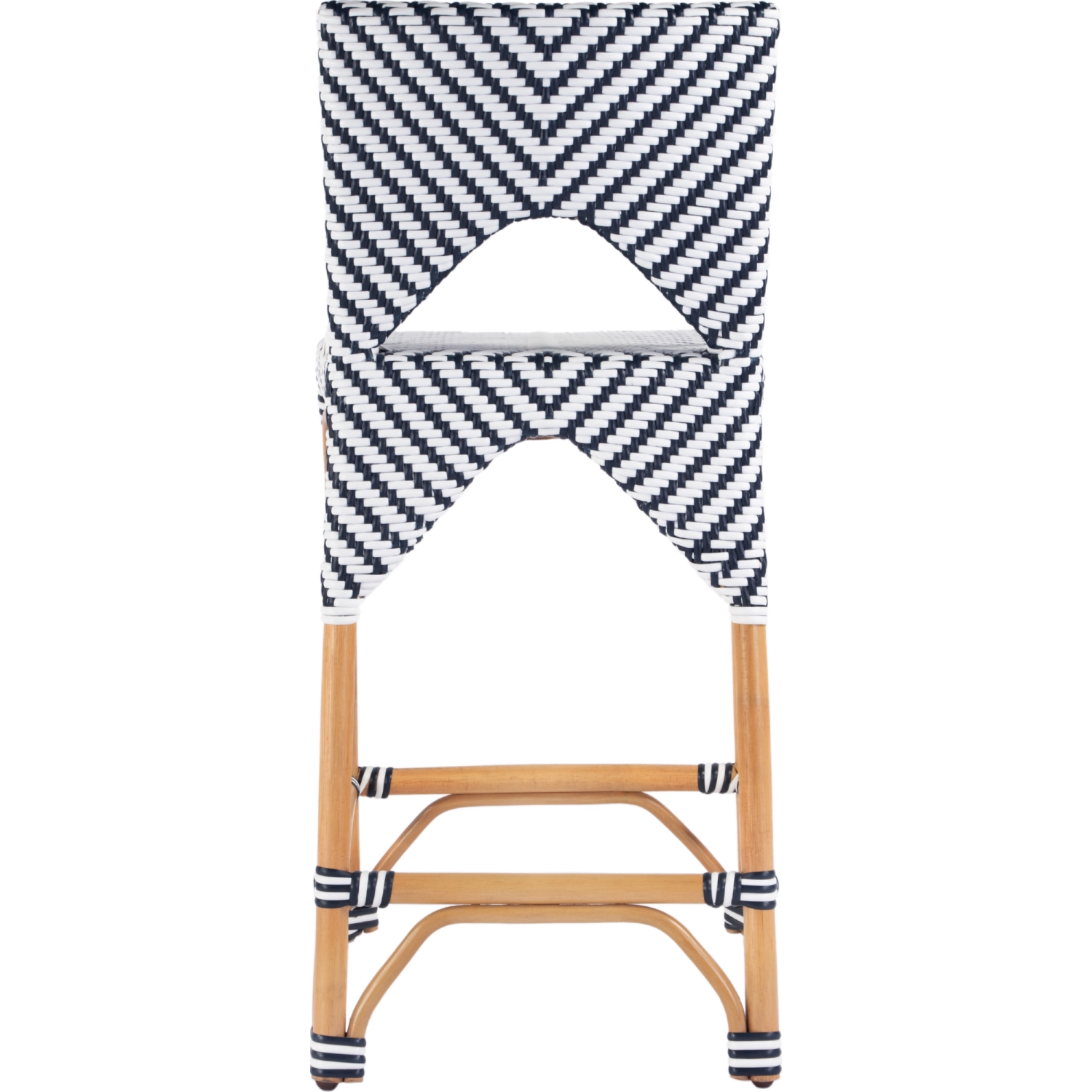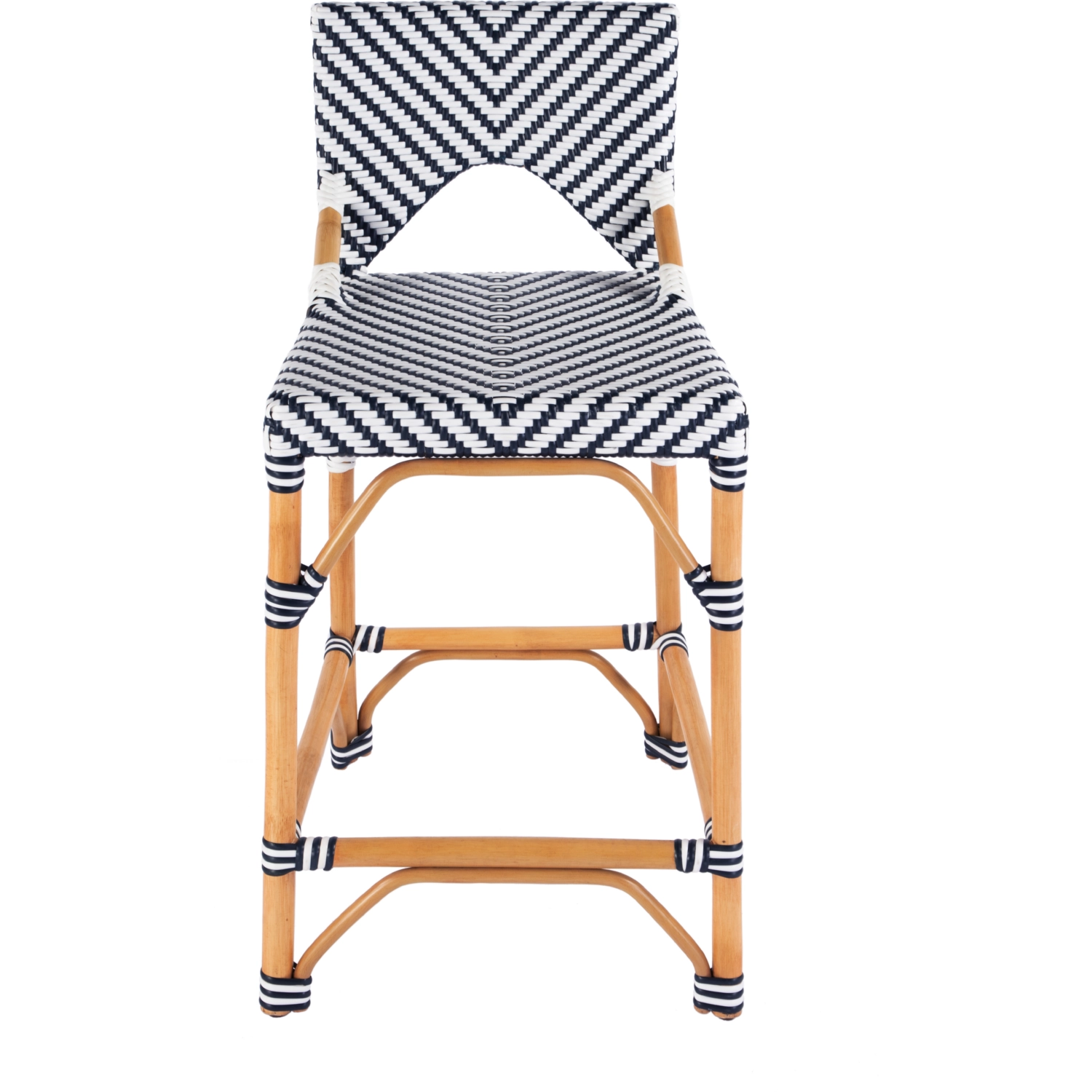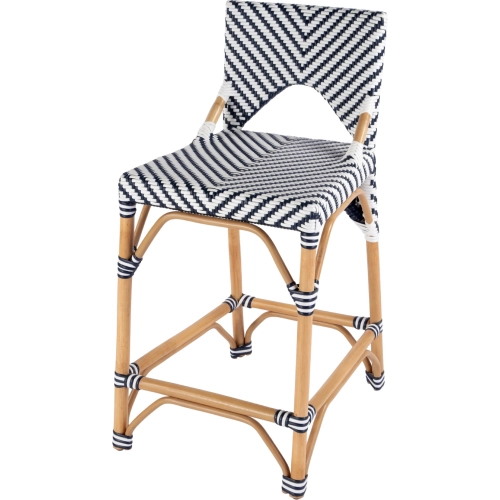 Butler Specialty Creanly Counter Stool in Navy Blue & White PE Rattan & Natural Rattan