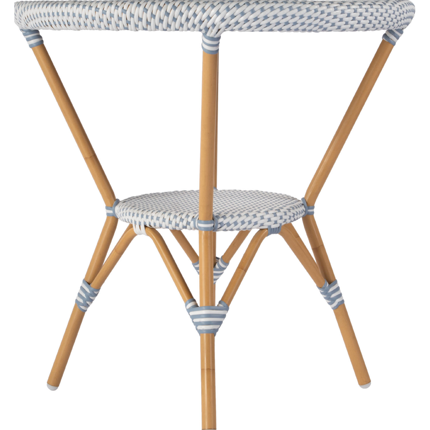 Butler Specialty Tobias 30" Outdoor Round Bistro Table in Blue, White & Natural Rattan