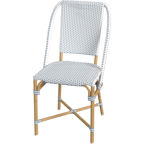 Butler Specialty Tobias Outdoor Dining Chair in White, Baby Blue Dot & Natural Rattan
