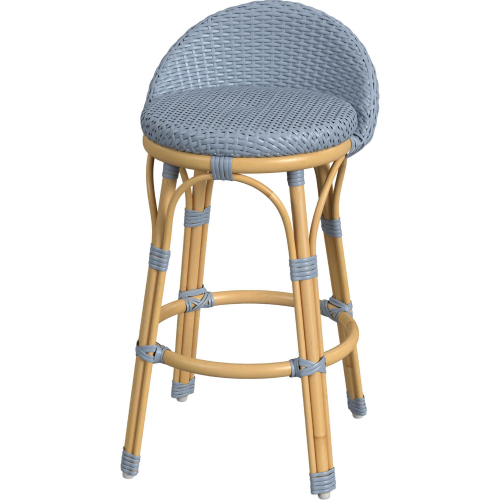 Butler Specialty 5649341 Tobias Outdoor Low Back Counter Stool Baby Blue Natural Rattan