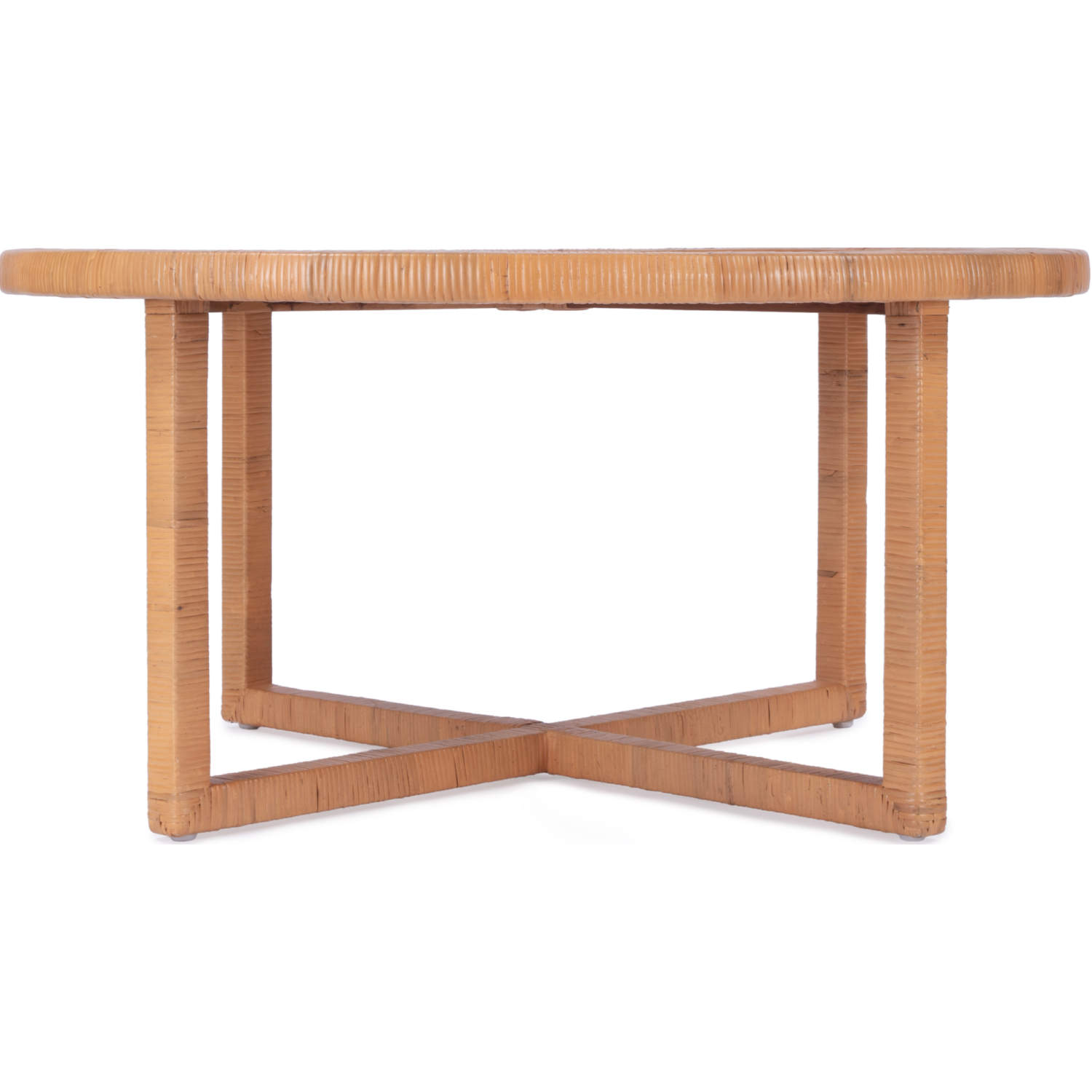 • Tightly woven rattan top with rattan peel apron top and table legs
