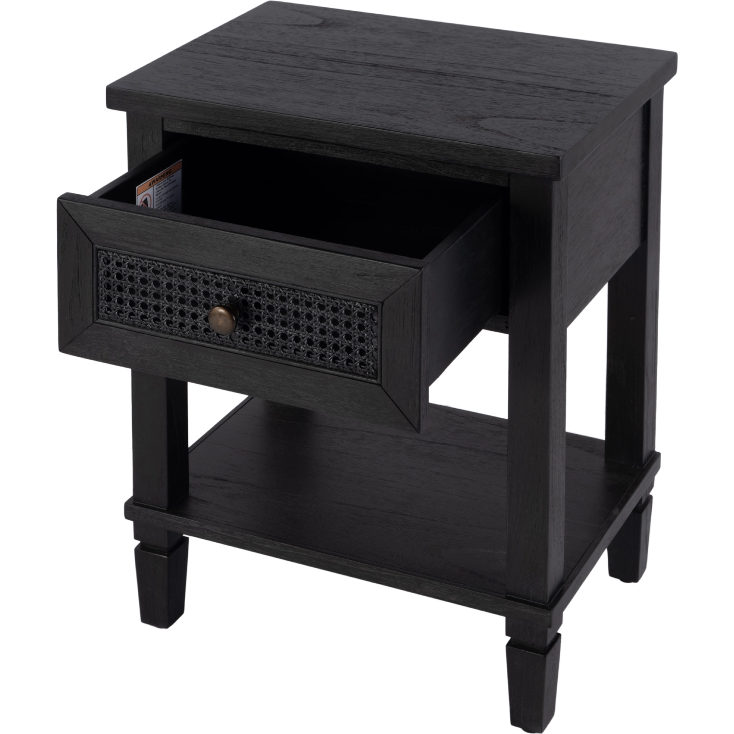 Butler Specialty 5758432 Flagstaff 1 Drawer Nightstand Black Washed Wood Cane