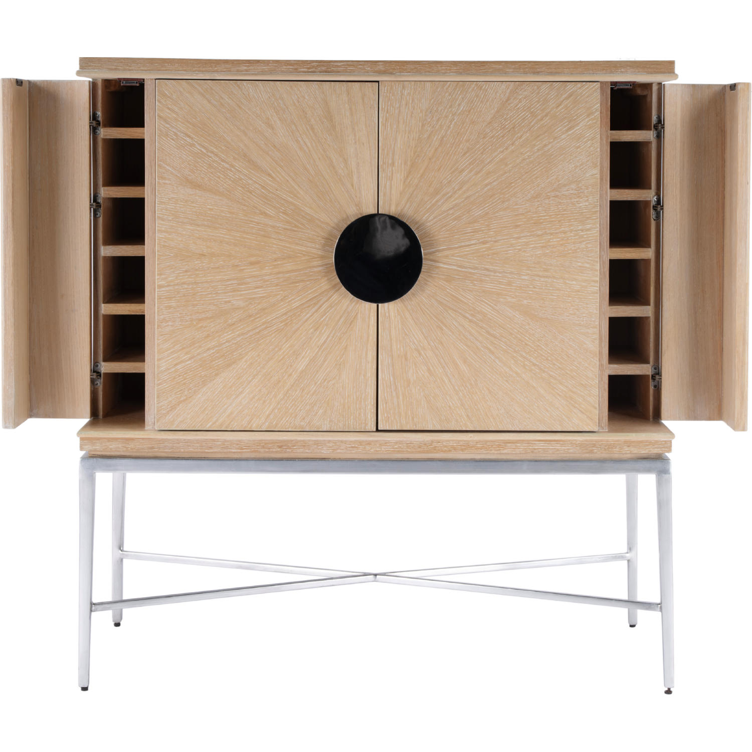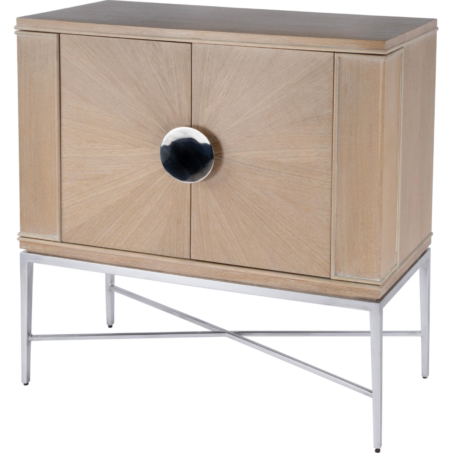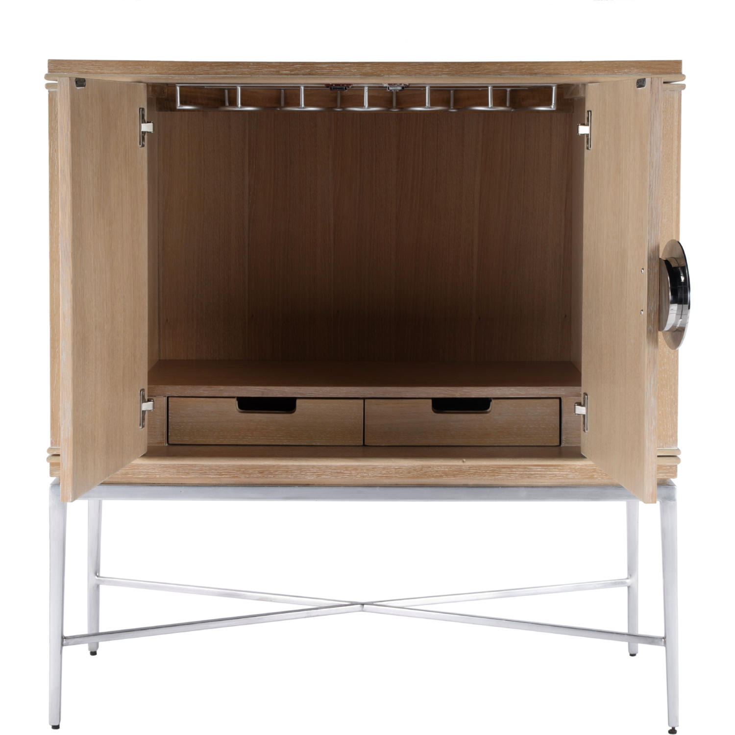 Butler Specialty Joanie 2 Door Wine Cabinet in Tan Beige Wood & Silver