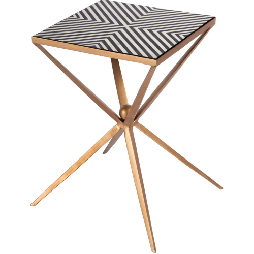 Butler Specialty Issa 16" Square Side Table in Black & White Inlay & Distressed Gold