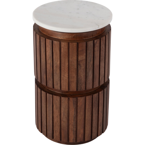 Butler Specialty Newton 12" Round Side Table in White Beige Marble & Walnut Finish