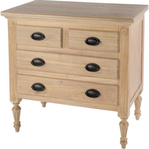 • Four spacious drawers glide smoothly on metal slides and are accented with bronze antique oval pull hardware