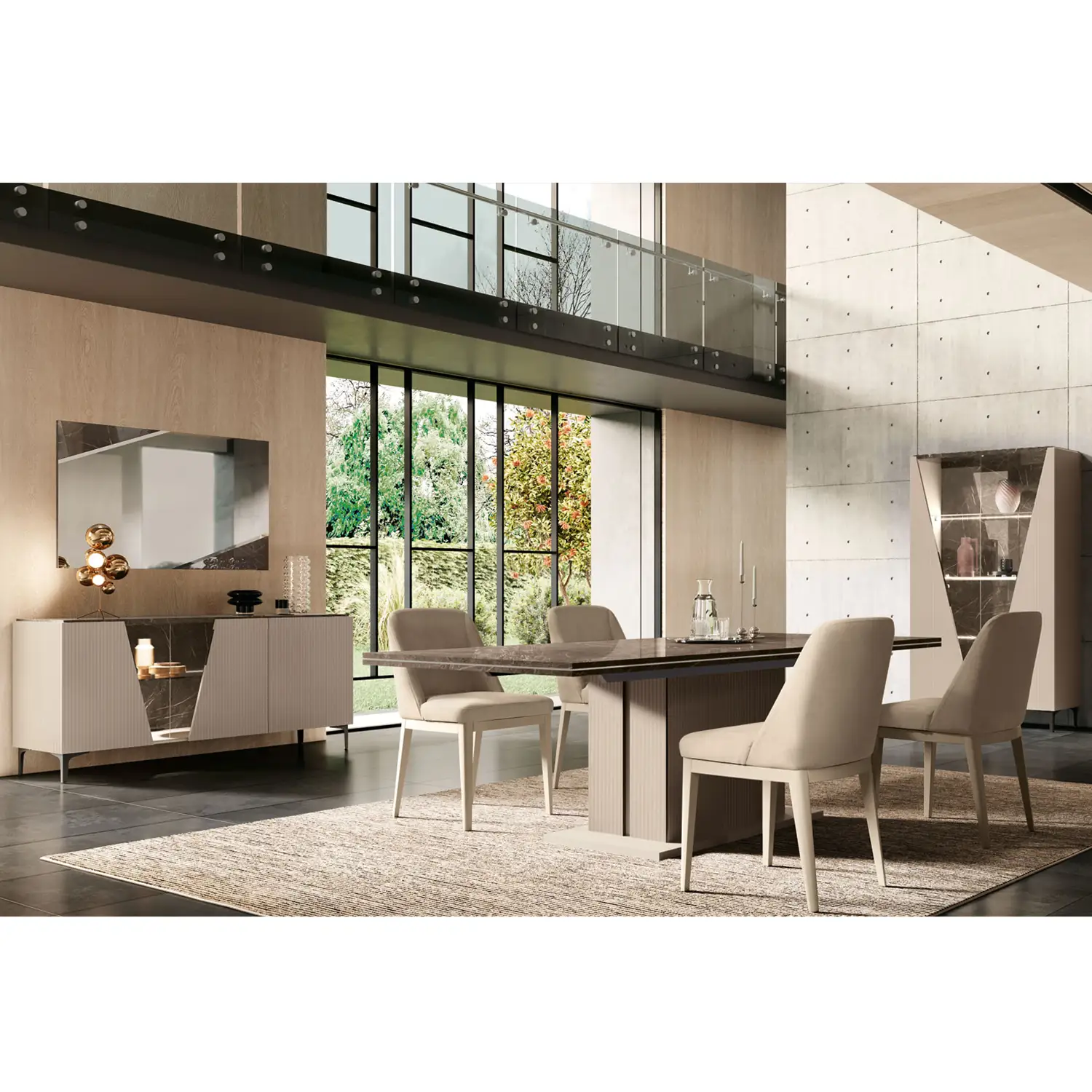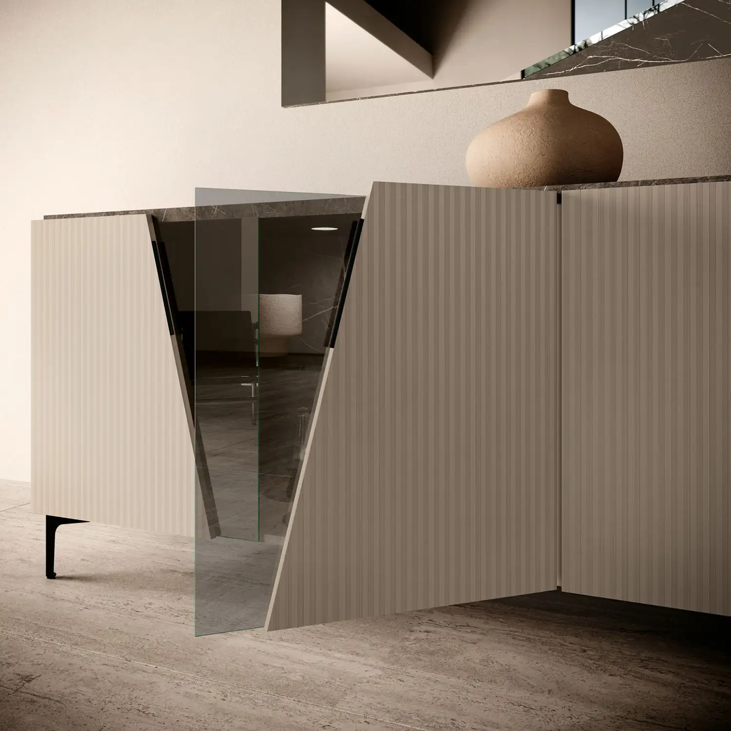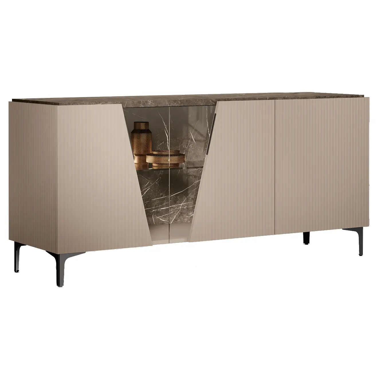 Camelgroup Italy FIDIA3DOORBUFFET Fidia 3 Door Buffet in Light Beige Black Marble Look