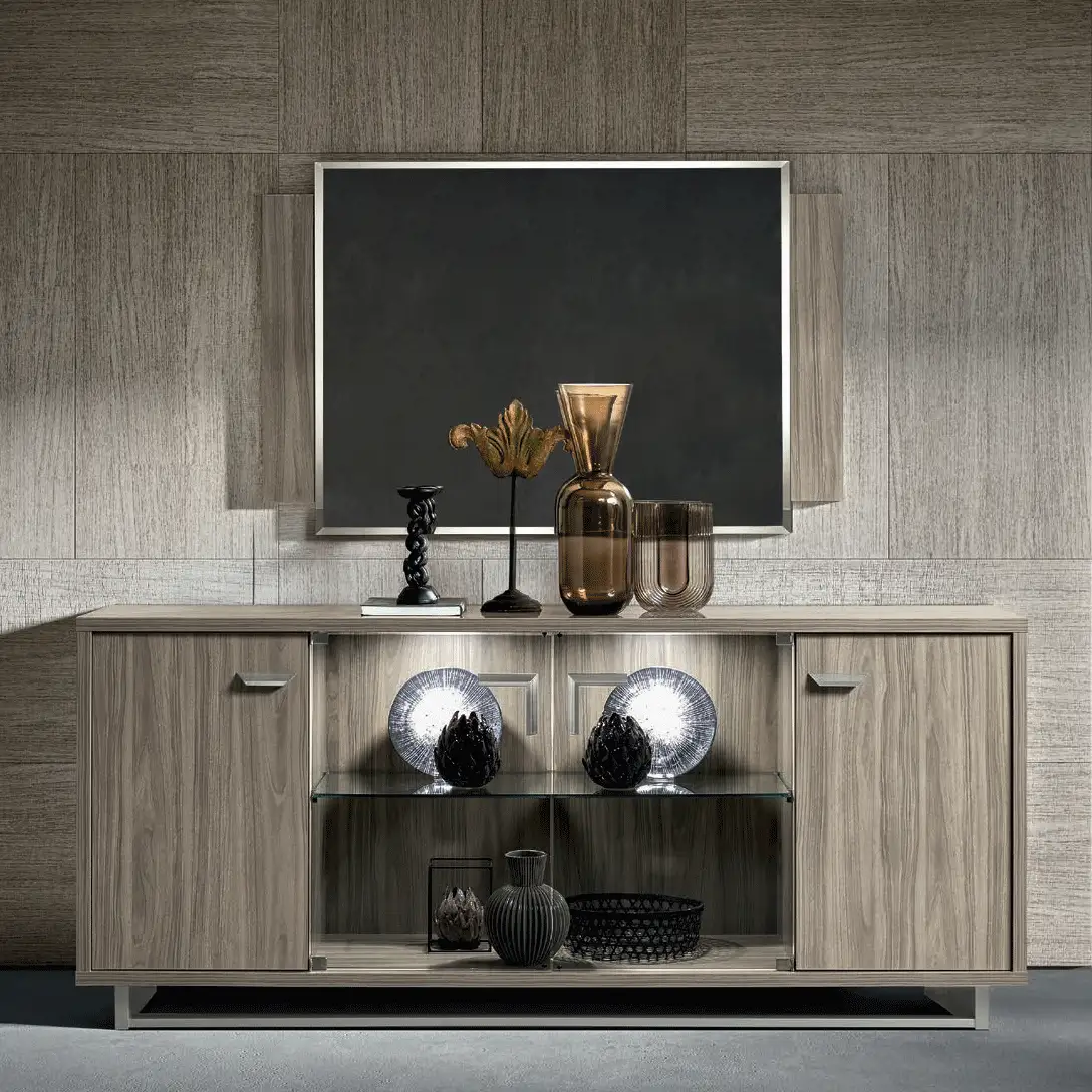Camelgroup Italy Volare 4 Door Buffet in Venetian Grey Finish & Glass
