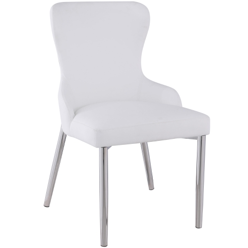 Chintaly Evelyn Wing Back Dining Chair in White Leatherette on Stainless (Set of 2)