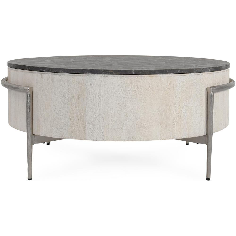 Classic Home Honor 42" Round Coffee Table in Gray Laminate, White Washed Wood & Nickel