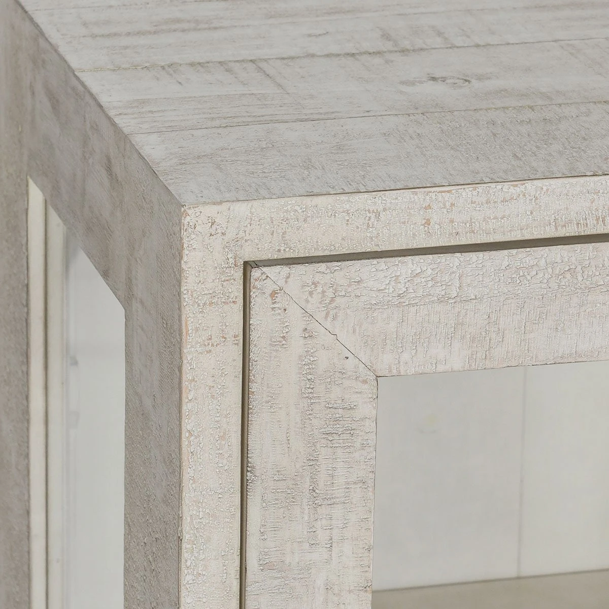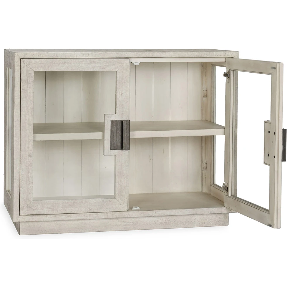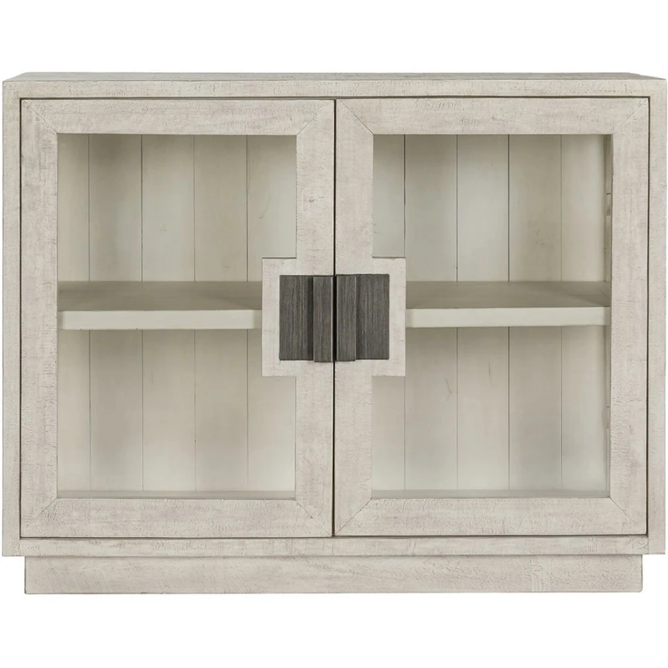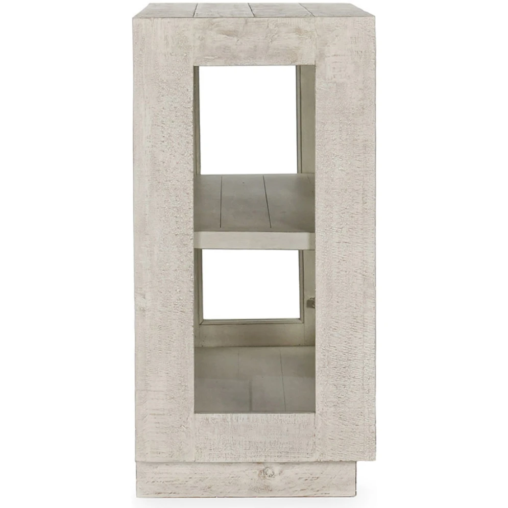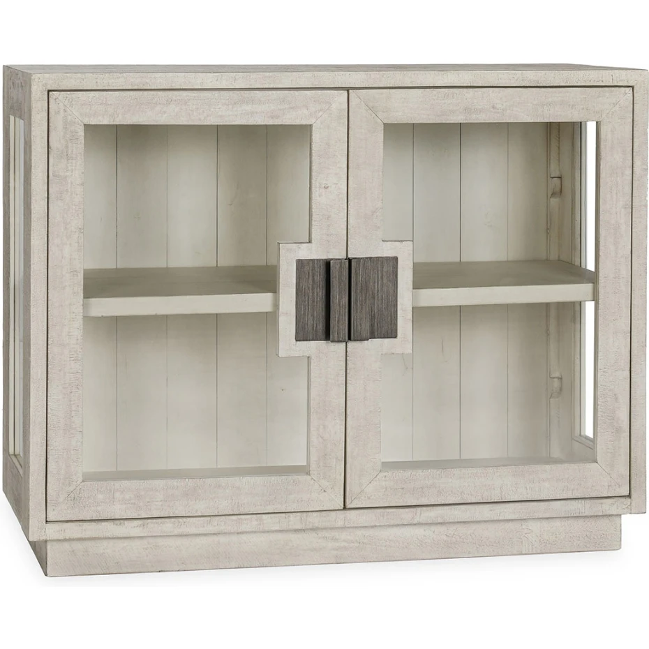 Classic Home Larson 2 Door Cabinet in White Washed Reclaimed Pine & Tempered Glass