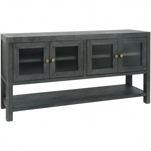 Classic Home Tenno 4 Door Cabinet in Black Reclaimed Pine & Tempered Fluted Glass
