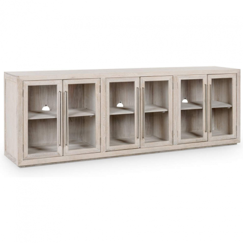 Classic Home 52010931 Bradley 6 Door Cabinet Oak Wood Tempered Glass