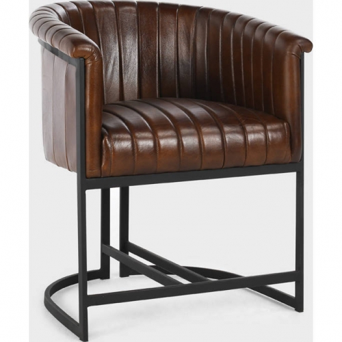 Classic Home Seville Dining Arm Chair in Brown Top Grain Leather & Iron