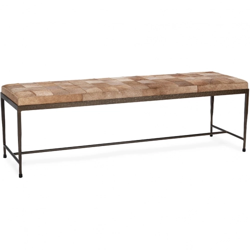 Classic Home Achen 60" Bench in Tonal Blonde Hair on Hide & Embossed Hammered Iron