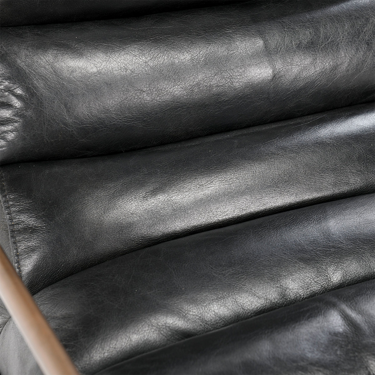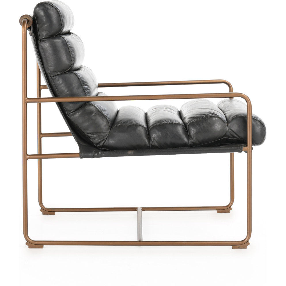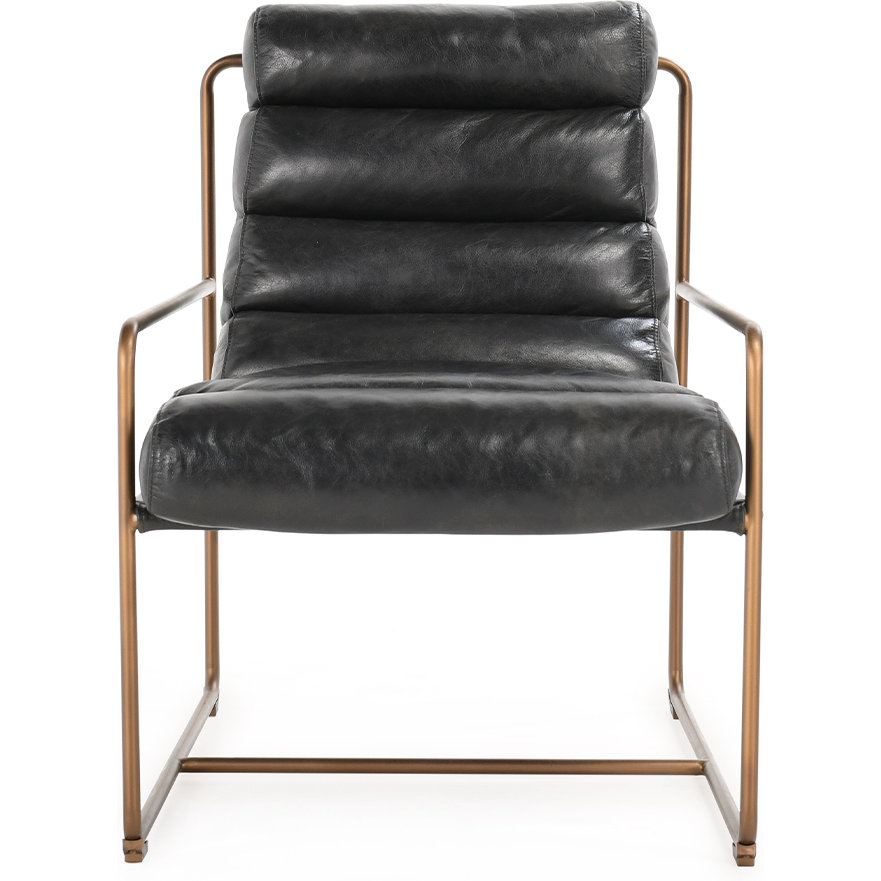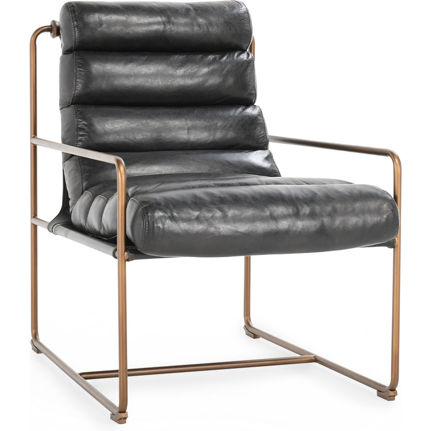 Classic Home Argo Accent Chair in Channel Tufted Black Top Grain Leather & Iron