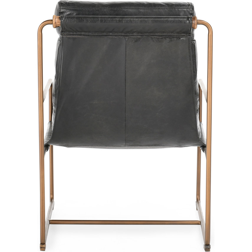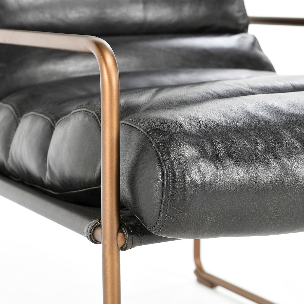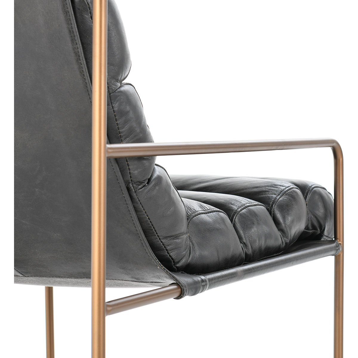Classic Home Argo Accent Chair in Channel Tufted Black Top Grain Leather & Iron