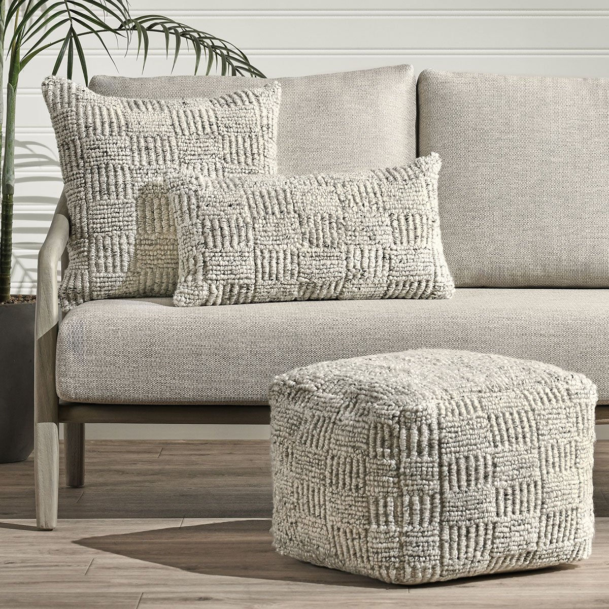 Classic Home VP10037 Performance 18" Vico Pouf Ottoman Ivory Multicolor Fabric