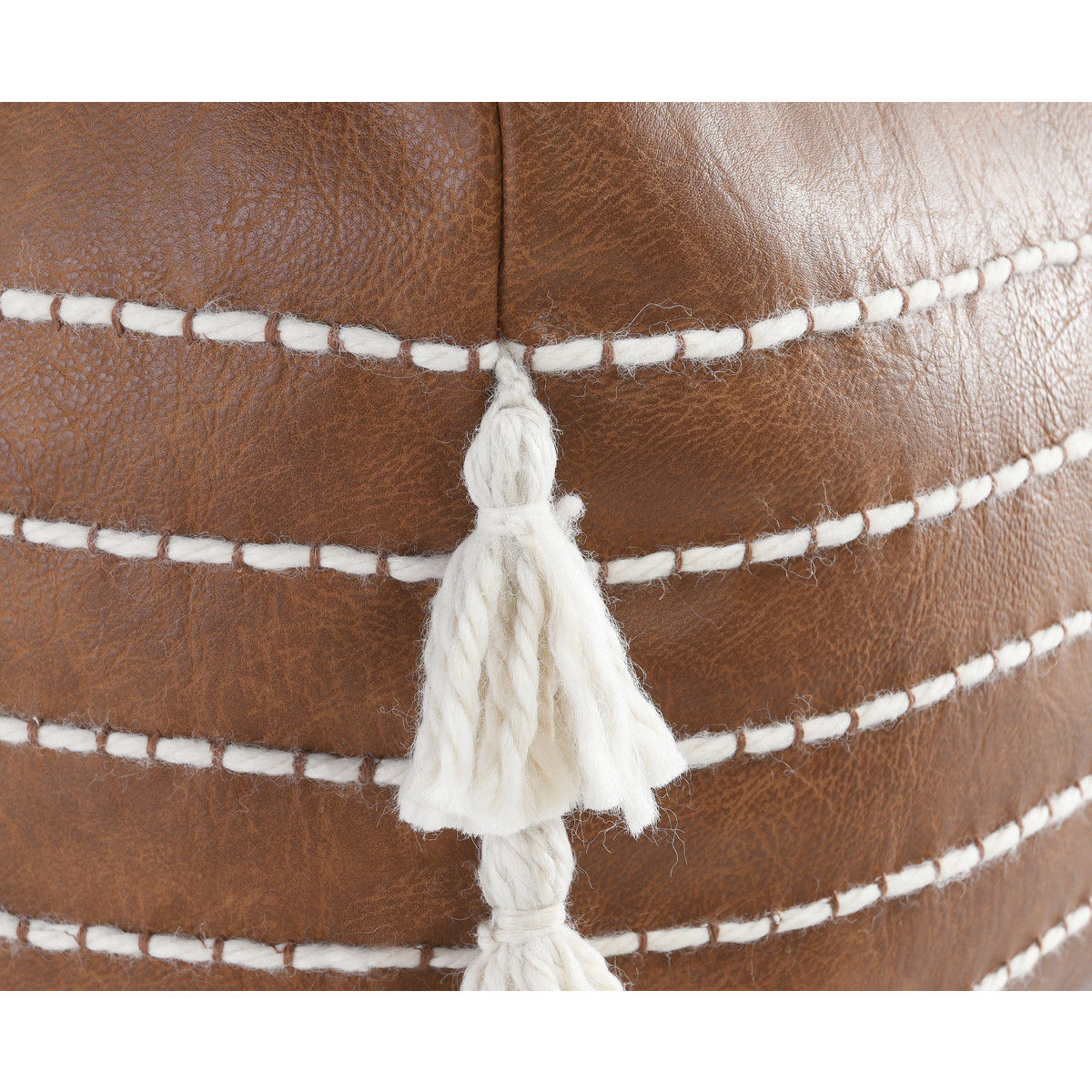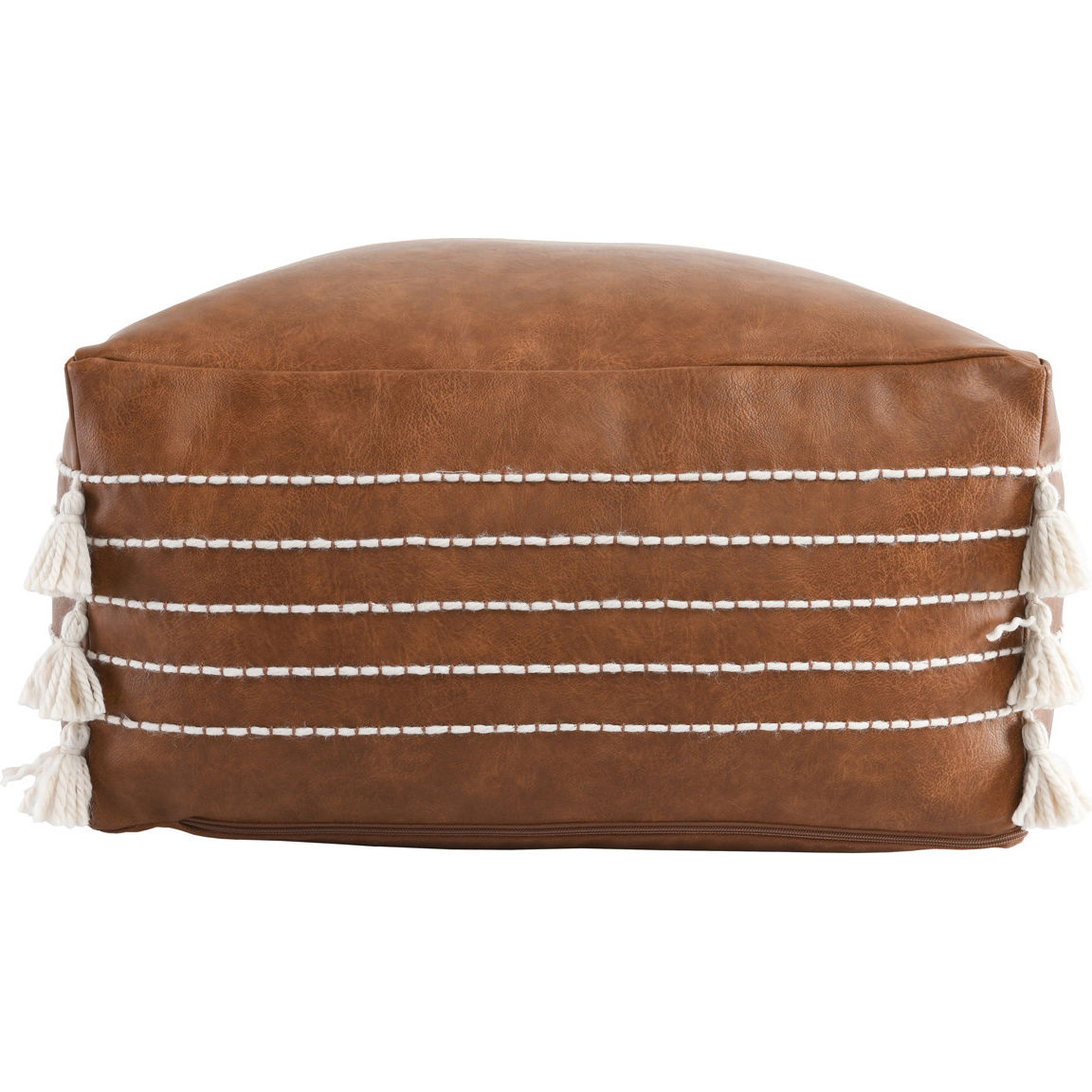 Classic Home Ezekiel Pouf Ottoman in Brown Vegan Leather & Tassels
