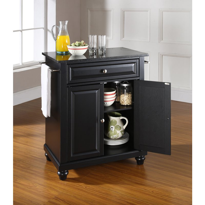 Crosley KF30024DBK Cuisine Cambridge 28" Kitchen Island Black Finish Solid Black Granite Top
