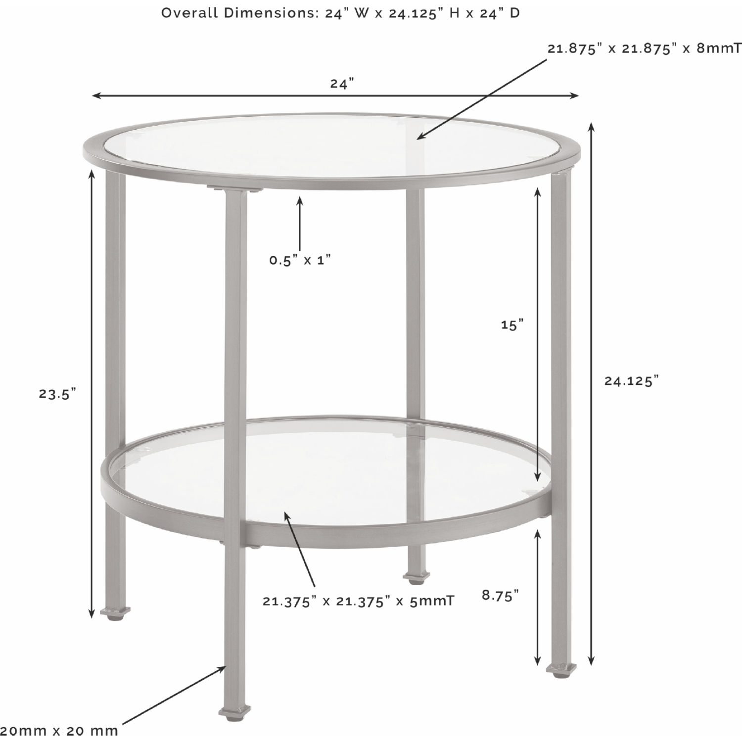 The Aimee End Table brings a stylish and modern edge to any home. With a sturdy yet sleek steel frame, this side table can be paired with a variety of decor without overwhelming the space. The Aimee End Table's tempered glass top and shelf create an inviting surface just right for your favorite beverage or book.