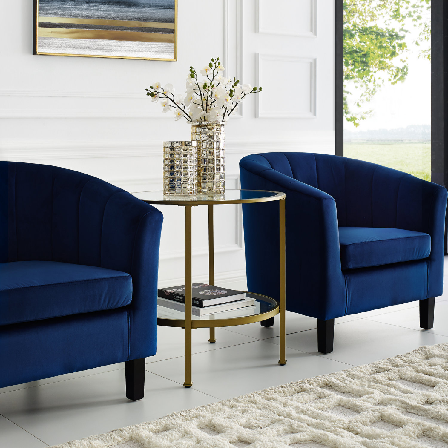 Crosley Aimee Side Table in Antique Gold & Tempered Glass