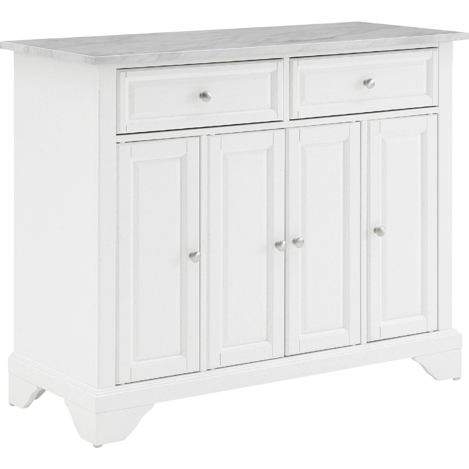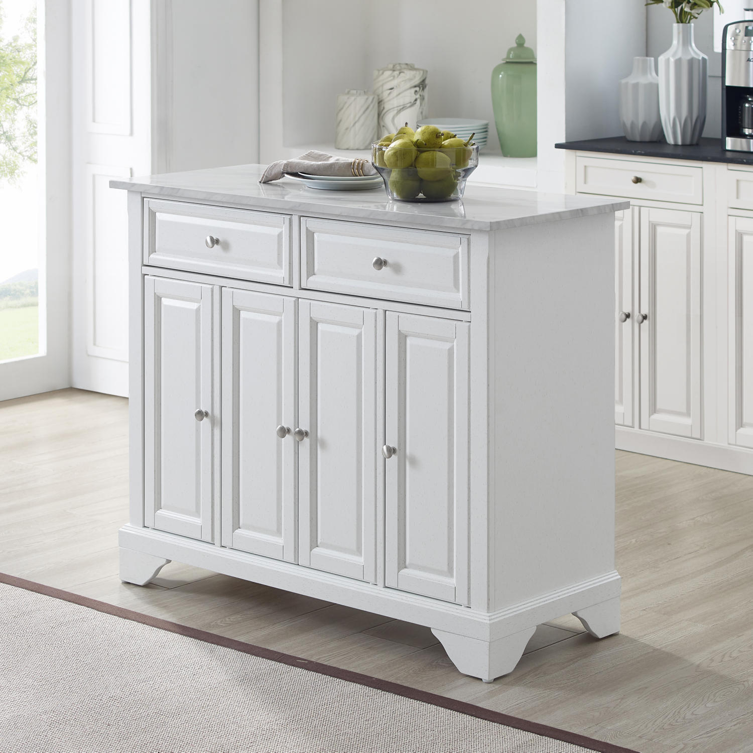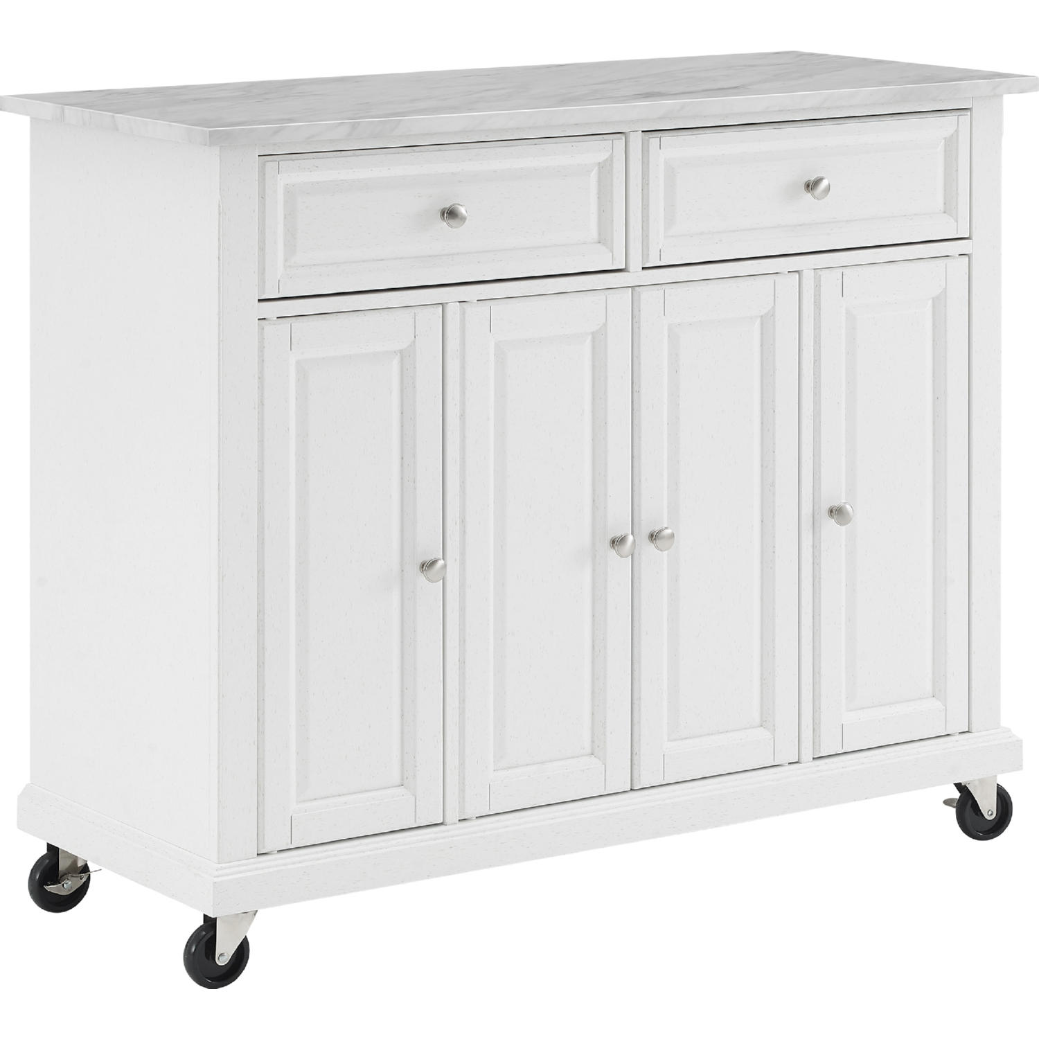 Crosley CF3021-WH Avery Kitchen Island Cart Distressed White White Faux Marble