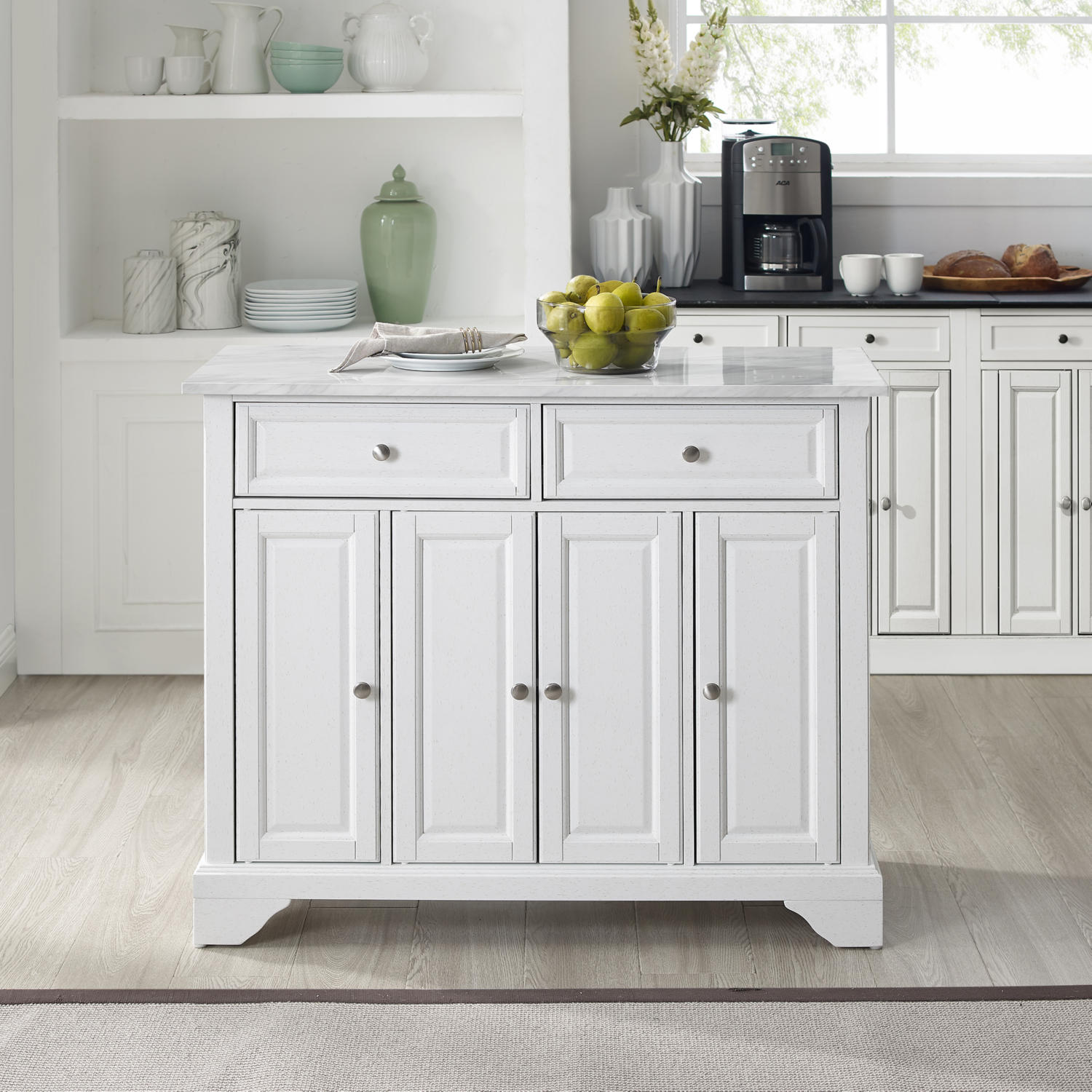 Crosley Avery Kitchen Island Cart in Distressed White & White Faux Marble
