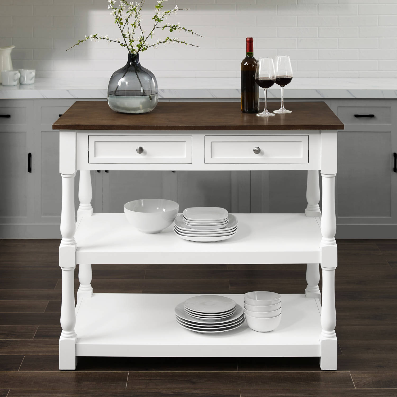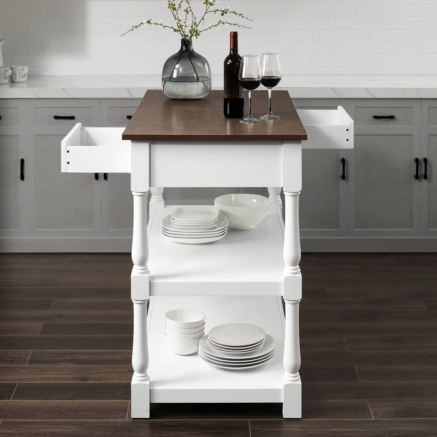Crosley CF3037BR-WH Caitlyn Kitchen Island White Dark Brown Finish Wood