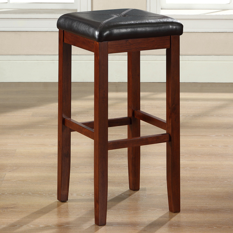 Crosley CF500529-MA Square 29" Seat Bar Stool Vintage Mahogany Finish Black Leatherette (Set of 2)