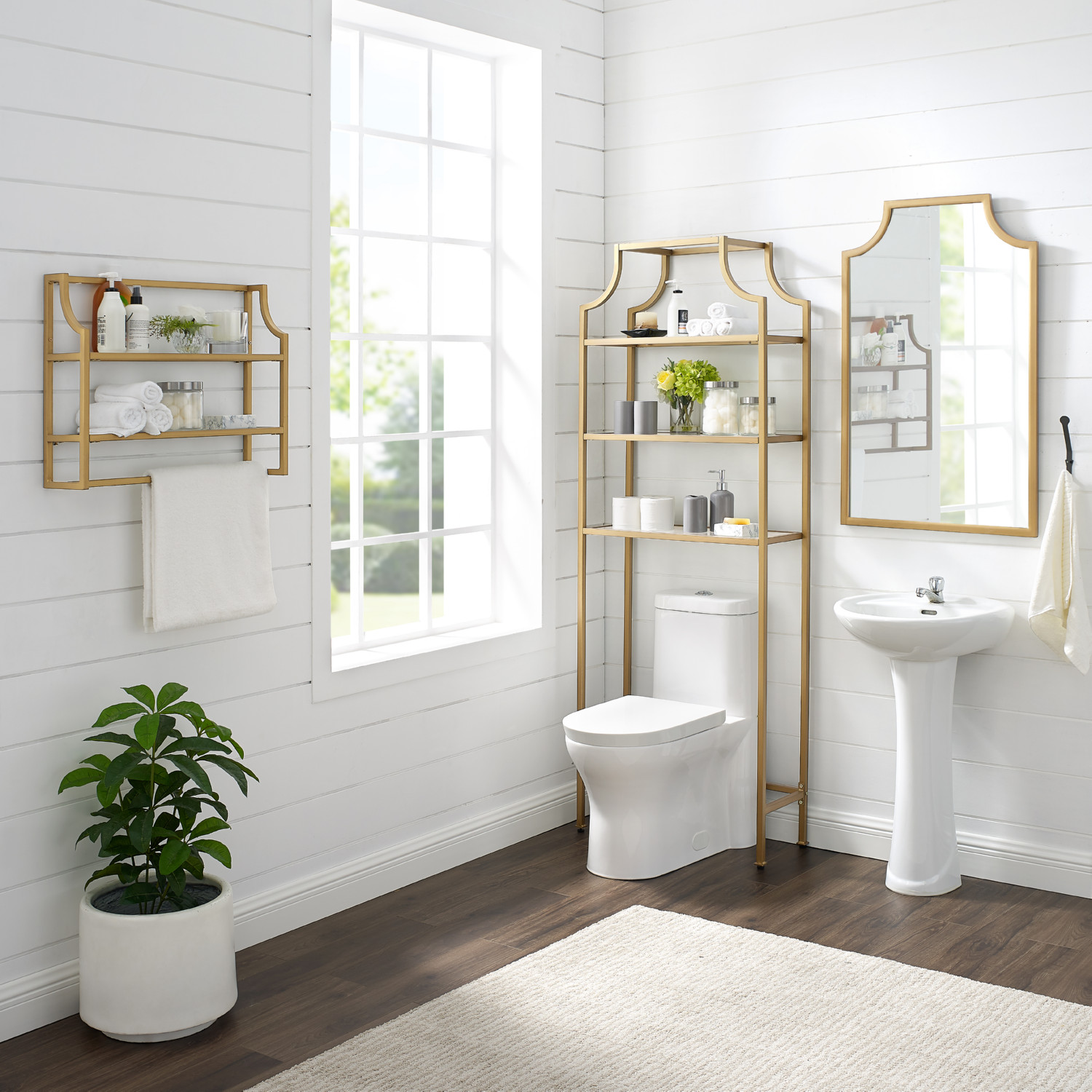 Crosley Aimee Space Saver Bookcase in Gold Steel & Glass